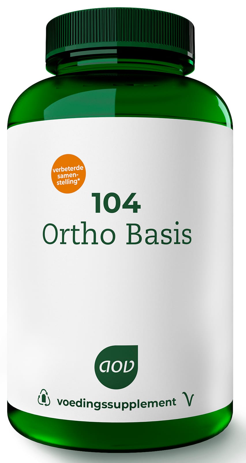 Je weet hoe het gaat. Je wilt goed voor jezelf zorgen, maar soms schiet het erbij in. Drukke dagen, weinig tijd om op alle details te letten, en toch wil je je lichaam geven wat het nodig heeft. AOV 104 Ortho Basis Tabletten van AOV is een voedingssupplement dat jou hierbij ondersteunt. Geen loze beloftes, maar 104 Ortho Basis is een complete multi ter aanvulling op de dagelijkse voeding. Deze multi levert een uitgebalanceerde combinatie van vitamines en mineralen waaronder ook vitamine A en K, bioflavonoïden, PABA en choline. 104 Ortho Basis bevat goed opneembare vitamines en wanneer jij dat kunt gebruiken.