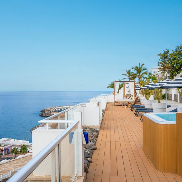Aparthotel Marina Bay View is het perfecte adres voor een ontspannen vakantie op Gran Canaria. Doordat het Aparthotel tegen een heuvel aan gebouwd is, heeft het hele hotel een indrukwekkend uitzicht op de oceaan en de haven. Het strand bereik je binnen 500 meter en ook het centrum van Puerto Rico ligt op loopafstand. De appartementen zijn modern ingericht en hebben net als de rest van het hotel een prachtig uitzicht. Neem een frisse duik in het zwembad of geniet van een heerlijk drankje bij The Whale Pool Bar met uitzicht op de haven. Heb je zin om er eens op uit te gaan? Bezoek dan Puerto Rico, een gezellig dorpje met leuke terrasjes, winkels en restaurants. Sluit de dag af met het proeven van de beste Spaanse tapas of paëlla. Dit wordt gegarandeerd een fijne vakantie!