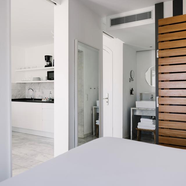 Aparthotel Marina Bay View – adults only is een 4 sterren accommodatie, warm en stijlvol ingericht. Je verblijft in een comfortabele 8, ingericht met aandacht voor detail. Het bed ligt goed, de ruimte is licht, en het balkon of terras nodigt uit om te blijven zitten.