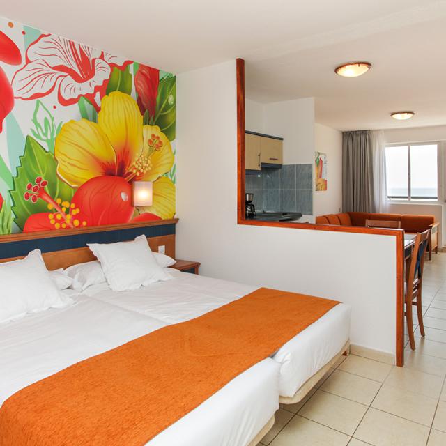 Het ruime aparthotel heeft prima kamers en zijn veelal voorzien van een balkon met zeezicht. Zo kun je zelfs vanuit je eigen kamer genieten van de spectaculaire zonsondergangen; want die zijn hier zeker! Ook is er voor de liefhebbers een zwembad, waar je buiten een lekkere duik ook op een ligstoel kunt genieten van het aangename klimaat. Welkom op het mooie Fuerteventura!