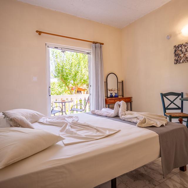 Appartementen Kyprianos is een 3 sterren accommodatie, warm en stijlvol ingericht. Je verblijft in een comfortabele , ingericht met aandacht voor detail. Het bed ligt goed, de ruimte is licht, en het balkon of terras nodigt uit om te blijven zitten.