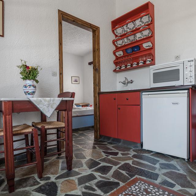 Om de hoek van de appartementen is een klein bakkertje te vinden, waar je iedere ochtend verse broodjes kunt halen. Met een ontbijtje op het balkon van het sfeervolle, nette appartement is ieder begin van de dag op deze manier een feestje. Je kunt de dag ook beginnen met een paar baantjes te trekken in het zwembad dat voor de appartementen ligt, er de hele dag lekker luieren op een ligbedje of na een indrukwekkende dag op het eiland nog een verfrissende duik nemen.