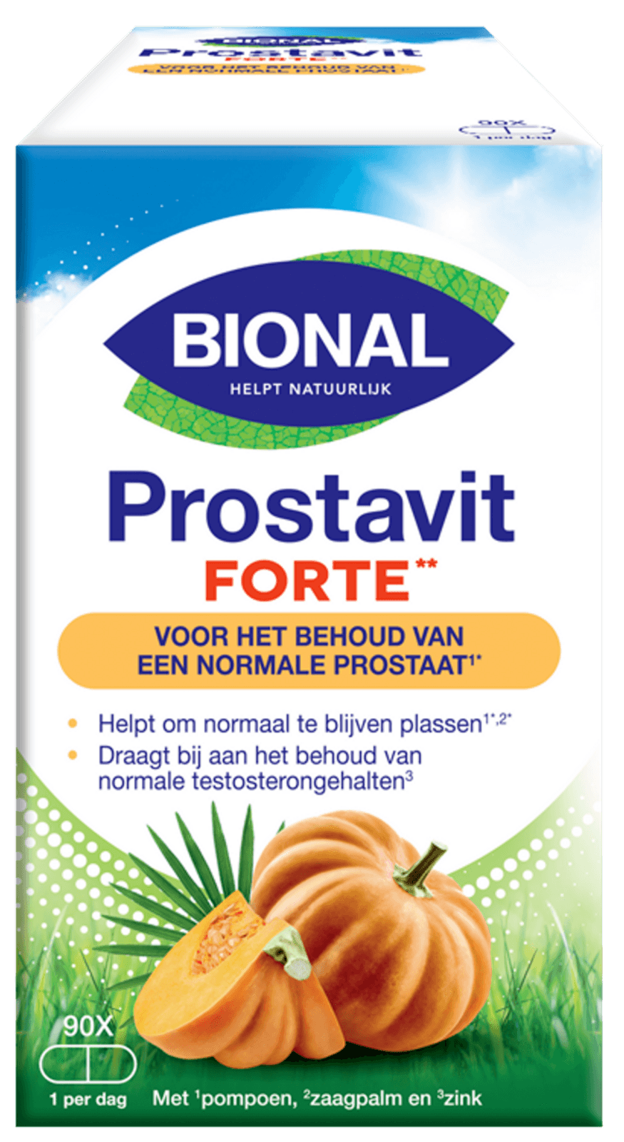Je weet hoe het gaat. Je wilt goed voor jezelf zorgen, maar soms schiet het erbij in. Drukke dagen, weinig tijd om op alle details te letten, en toch wil je je lichaam geven wat het nodig heeft. Bional Prostavit Forte Capsules van Bional is een voedingssupplement dat jou hierbij ondersteunt. Geen loze beloftes, maar Bional Prostavit Forte Capsules (90 stuks) is een voedingssupplement op basis van pompoen, zaagpalm, seleen en zink. Naarmate we ouder worden, kan de prostaat in omvang toenemen en zorgen voor vervelende klachten.Bional Prostavit Forte:Seleen draagt bij aan de productie van wanneer jij dat kunt gebruiken.