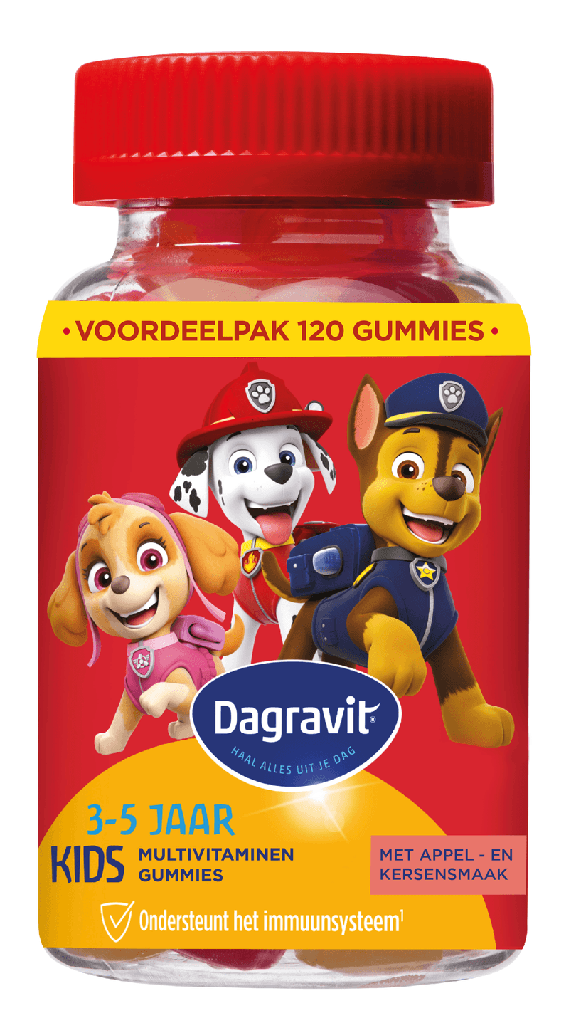 Je weet hoe het gaat. Je wilt goed voor jezelf zorgen, maar soms schiet het erbij in. Drukke dagen, weinig tijd om op alle details te letten, en toch wil je je lichaam geven wat het nodig heeft. Dagravit Kids-Xtra Multivitaminen Gummies Voordeelpak van Dagravit is een voedingssupplement dat jou hierbij ondersteunt. Geen loze beloftes, maar Dagravit Kids-Xtra Multivitaminen Gummies zijn bedoeld voor kinderen vanaf 3 jaar. De gummies bevatten belangrijke vitaminen en mineralen en hebben een heerlijke appel en kersen smaak. Vitamine C en het mineraal zink dragen bij aan het normaal functioneren van het wanneer jij dat kunt gebruiken.