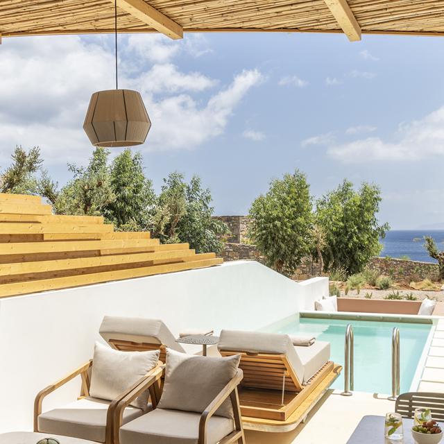Elounda Wave Suites biedt moderne, stijlvolle suites met privézwembad en een prachtig zeezicht. De inrichting is strak en minimalistisch, met een comfortabel terras om te zonnen of te relaxen. Het is een waar paradijsje, waar je volledig tot rust komt. Er even op uit? Binnen handbereik vind je gezellige restaurantjes en winkels om je vakantie helemaal compleet te maken.