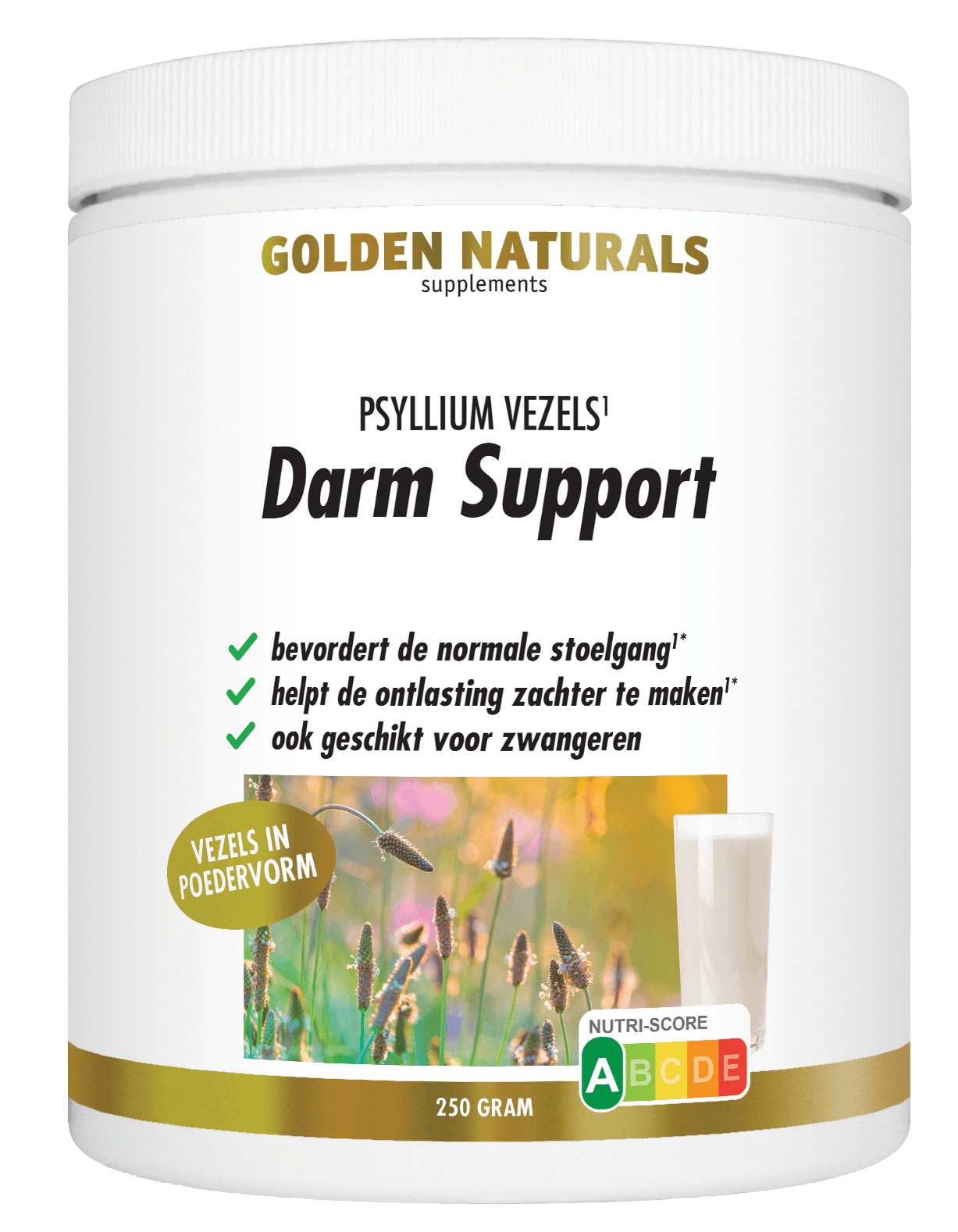 Je weet hoe het gaat. Je wilt goed voor jezelf zorgen, maar soms schiet het erbij in. Drukke dagen, weinig tijd om op alle details te letten, en toch wil je je lichaam geven wat het nodig heeft. Golden Naturals Darm Support Poeder van Golden Naturals is een voedingssupplement dat jou hierbij ondersteunt. Geen loze beloftes, maar Golden Naturals Darm Support Poeder is een voedingssupplement op basis van Psyllium vezels, ook wel bekend als vlozaadvezels. Dit zijn de zogenaamde zaadhuiden van zaden van planten en bestaan voor een hoog percentage uit niet-verteerbare vezels. Deze voedingsvezels in wanneer jij dat kunt gebruiken.