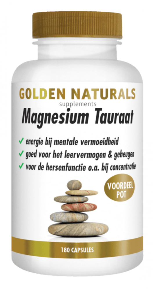 Je weet hoe het gaat. Je wilt goed voor jezelf zorgen, maar soms schiet het erbij in. Drukke dagen, weinig tijd om op alle details te letten, en toch wil je je lichaam geven wat het nodig heeft. Golden Naturals Magnesium Tauraat Capsules van Golden Naturals is een voedingssupplement dat jou hierbij ondersteunt. Geen loze beloftes, maar Golden Naturals Magnesium Tauraat Capsules (90 stuks) is een voedingssupplement met magnesiumtauraat en vitamine B6. Magnesiumtauraat is een vorm van magnesium die organisch gebonden is aan het aminozuur l-taurine, vandaar de naam magnesiumtauraat en wordt gezien als wanneer jij dat kunt gebruiken.