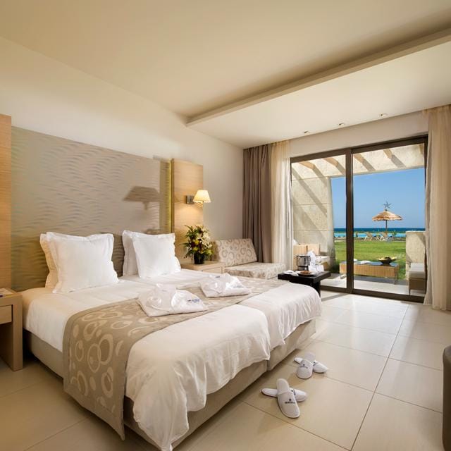 Hotel Astir Odysseus staat voor topkwaliteit en uitstekende service. Met het hele gezin of lekker met z’n tweeën kun je hier genieten van een heerlijke vakantie. Er zijn verschillende type kamers te reserveren en de inrichting is een combinatie van luxe en comfortabele functionaliteit. Het hotel staat bekend om de vriendelijke service en de uitgebreide all inclusive buffetten, met voor ieder wat wils elke dag weer, reserveer je dit erbij dan is het maximaal genieten. Ook de ligging aan het mooie zandstrand is perfect te noemen en houd je liever van zwemmen in het zwembad, dan zijn er maar liefst twee baden met fijne ligbedjes eromheen. En heb je dorst? Via een app op je telefoon of tablet bestel je zo een drankje van de bar. Dit is nou op en top vakantie vieren!