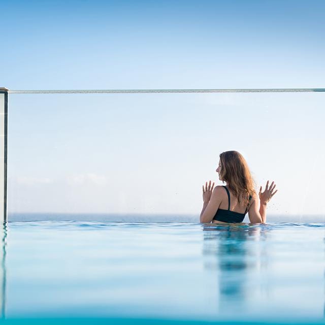 Op het zonneterras van Hotel GF Victoria kun je heerlijk wegdommelen in de zon. Je bedje afkomen is niet nodig, want uiteraard worden jouw favoriete, koele drankjes naar je toe gebracht. Ben je op zoek naar nog meer verkoeling, neem dan een duik in een van de prachtige zwembaden. Op het dak is er zelfs een infinity pool met een glazen bodem: het lijkt wel alsof je boven de grond zweeft, geweldig! De rest van het dakterras is net zo fantastisch. Hippe zithoekjes wisselen zich af met luxe loungebedden en de beste barmannen zorgen voor creatieve cocktails. Wil je leren surfen, dan kun je zelfs gebruik maken van een heuse surf pool!