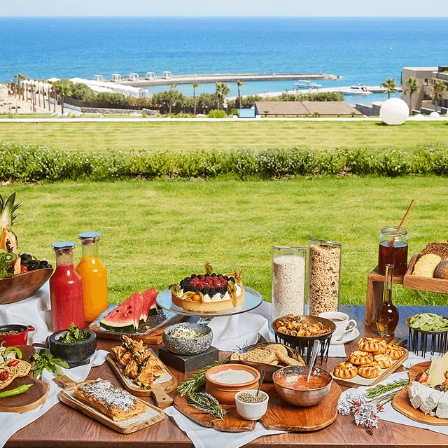 Ook op culinair niveau word je meer dan verwend. Er zijn meerdere restaurants die exclusieve menu’s bieden. Voor de jonge gasten is er een kindermenu samengesteld zodat ook zij van hun favoriete gerechtjes kunnen proeven. Genietend van de zonsondergang en een heerlijk aperitief in de poolbar, word je verleid tot het maken van een keuze uit de fantastische Griekse of de Mediterrane keuken.