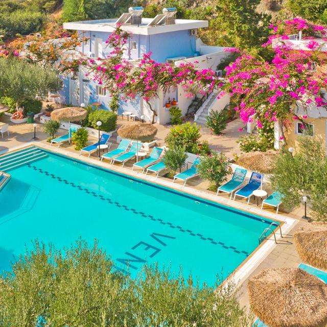 Midden in een schitterende tuin vol bomen en bloemen ligt Hotel Venezia. De hele familie zorgt voor een onvergetelijk verblijf en maken het je graag naar je zin. Het is hier het echt genieten en je komt helemaal in de relax stand. De ligging is ook top. Op een steenworp afstand ligt een rustig zandstrand, heerlijk om hier gedurende de dag te genieten van de ruisende zee en de zon. Je verblijft in sfeervolle hotelkamers en bieden een fijne sfeer. Bij het zwembad, waar de zonnebedjes er uitnodigend voor je bij staan, kun je gedurende dag lekker relaxen. Met een heerlijk koel drankje van de poolbar is het hier wel erg goed vertoeven. Zowel het ontbijt als het diner zijn inbegrepen. Alle maaltijden worden door de eigenaar zelf klaar gemaakt met veel passie en liefde voor de Griekse keuken. Dat moet je proeven!
