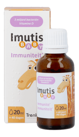 Je weet hoe het gaat. Je wilt goed voor jezelf zorgen, maar soms schiet het erbij in. Drukke dagen, weinig tijd om op alle details te letten, en toch wil je je lichaam geven wat het nodig heeft. Imutis Baby Druppels van Trenker is een voedingssupplement dat jou hierbij ondersteunt. Geen loze beloftes, maar Imutis Baby Druppels bevat vier specifieke stammen bacteriën, gekozen op basis van diverse klinische studies. Daarnaast bevat Imutis Baby vitamine D dat bijdraagt tot de normale werking van het immuunsysteem. Dosering14 druppels per dag. De aanbevolen dagelijkse dosering wanneer jij dat kunt gebruiken.