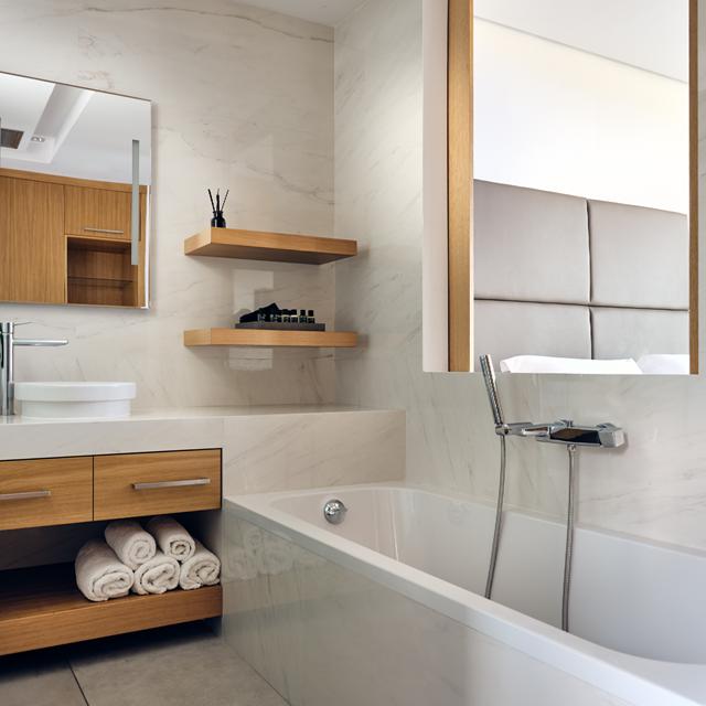 Alleen voor 'adults only' is dit een luxe escape wat pal aan het strand ligt met een uitzicht op de kraakheldere Ionische Zee. Je wordt hier iedere dag getrakteerd op spectaculaire uitzichten en geniet van de exclusiviteit van een 5-sterrenhotel. De riante kamers zijn modern ingericht en zijn allemaal voorzien van een kingsize bed, fluffy badjassen en slippers, een turndown service en een fantastisch uitzicht. De suites hebben ook nog een eigen zwembad, zodat je van nog meer luxe en privacy kunt genieten.