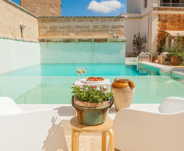 Elke keer als ik Li Calizzi ga bezoeken, lijkt het wel een droom. Ik zit op het overdekte terras en kijk uit over de tuin. Mijn ogen dwalen over de met bloemen versierde poort, het rustig deinende water in de twee zwembaden en de tuin vol met olijfbomen en wijnranken. De landelijke inrichting en de karakteristieke uitstraling van het landhuis geven alles om me heen een romantisch tintje.