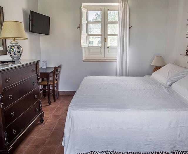 Ik ken Junio nog van toen ik voor het eerst op Sicilië was. Hij is een Italiaan pur sang: altijd in voor een praatje, gastvrij en ook bij hem gaat liefde door de maag. Toen al was zijn eeuwenoude gerenoveerde masseria een absolute weelde en nu heeft hij er nog een stuk bijgebouwd. ‘Druk wordt het hier nooit omdat we alles zo ruim en wijds hebben opgezet.’ En dat klopt. Waar je ook hier bent, overal viert rust hoogtij. Of het nu de typische Siciliaanse binnenplaats is van de boerderij of het restaurant waar je proeft van de eigen landerijen. Ik zucht en glimlach. Alles is hier een lust voor het Italiaanse oog. Terrassen met sierlijke zitjes, de terracotta vloeren en de houten plafonds in de hotelkamers. ‘Hier vlak bij ligt Noto, een van de belangrijkste barokke steden ter wereld. Die schoonheid van het verleden wilden we ook hier in ere houden.’ En dat voel je als je de stenen trap naar boven pakt, de eeuwenoude olijfbomen ziet waaien in de wind of de oudroze kleur van de boerderij bewondert.