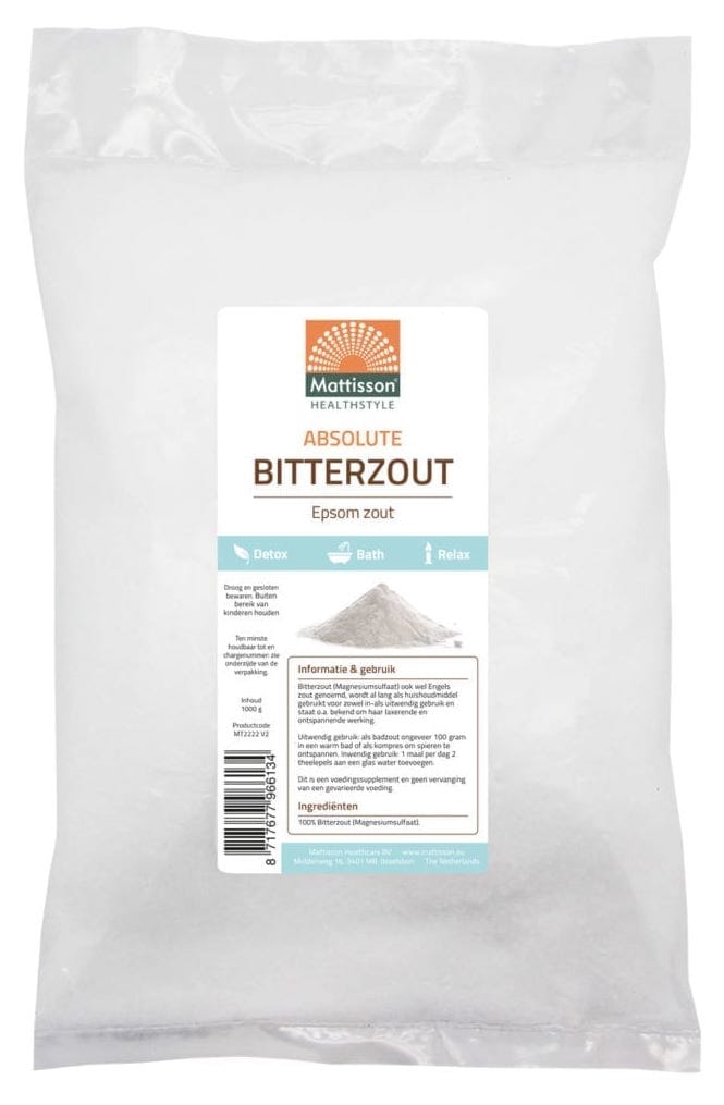 Je weet hoe het gaat. Je wilt goed voor jezelf zorgen, maar soms schiet het erbij in. Drukke dagen, weinig tijd om op alle details te letten, en toch wil je je lichaam geven wat het nodig heeft. Mattisson HealthStyle Bitterzout Epsom Navulzak van Mattisson HealthStyle is een voedingssupplement dat jou hierbij ondersteunt. Geen loze beloftes, maar Mattisson Healthstyle Bitterzout Epsom Navulzak (magnesiumsulfaat) wordt ook wel Engels zout genoemd. Het is een traditioneel huishoudelijk middel voor de uiterlijke en innerlijk verzorging van het lichaam. Bitterzout staat o.a. bekend om haar ontspannende en laxerende wanneer jij dat kunt gebruiken.
