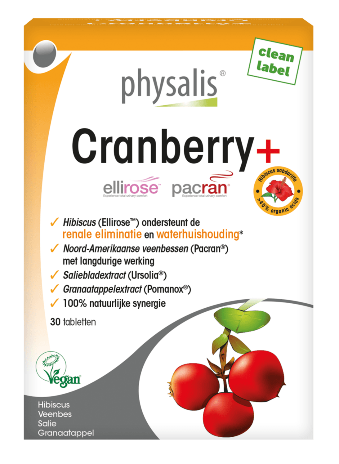 Je weet hoe het gaat. Je wilt goed voor jezelf zorgen, maar soms schiet het erbij in. Drukke dagen, weinig tijd om op alle details te letten, en toch wil je je lichaam geven wat het nodig heeft. Physalis Cranberry + Tabletten van Physalis is een voedingssupplement dat jou hierbij ondersteunt. Geen loze beloftes, maar Physalis Cranberry+ is een natuurlijke combinatie van vier hoogwaardige en onderzochte plantenextracten. De langdurige effecten van Pacran®, een mix van alle gunstige componenten van de Noord-Amerikaanse veenbes of cranberry (zoals proanthocyanidines, organische zuren, wanneer jij dat kunt gebruiken.