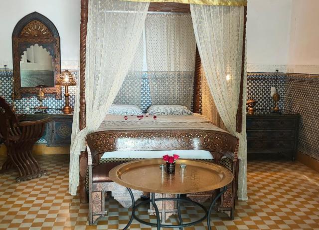 Duik diep in de betoverende wereld van Marrakesh met een verblijf in Riad Ifoulki, een oase van rust verscholen in het bruisende hart van de medina. Ervaar de authentieke charme van dit eeuwenoude riad, waar traditionele Marokkaanse architectuur en gastvrijheid samenkomen om je te omhullen in pure magie.