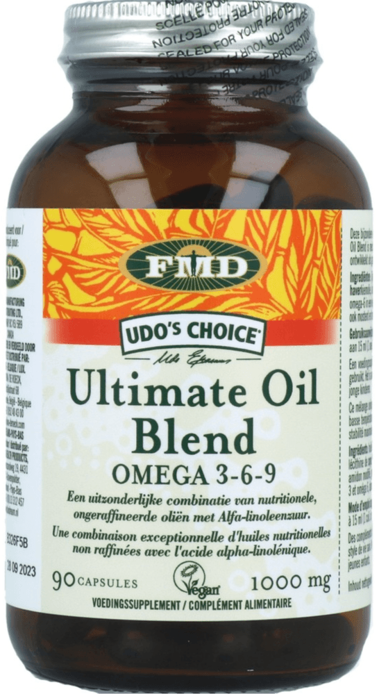 Je weet hoe het gaat. Je wilt goed voor jezelf zorgen, maar soms schiet het erbij in. Drukke dagen, weinig tijd om op alle details te letten, en toch wil je je lichaam geven wat het nodig heeft. Udos Choice Ultimate Oil Blend Capsules 90st van Udos Choice is een voedingssupplement dat jou hierbij ondersteunt. Geen loze beloftes, maar Udos Choice Ultimate Oil Blend Capsules zijn samengesteld met een unieke combinatie van ongeraffineerde oliën, rijk aan ALA (Alfa-linoleenzuur), wat bijdraagt aan het behoud van normale cholesterolgehalten in het bloed. Deze capsules zijn een waardevolle aanvulling op wanneer jij dat kunt gebruiken.