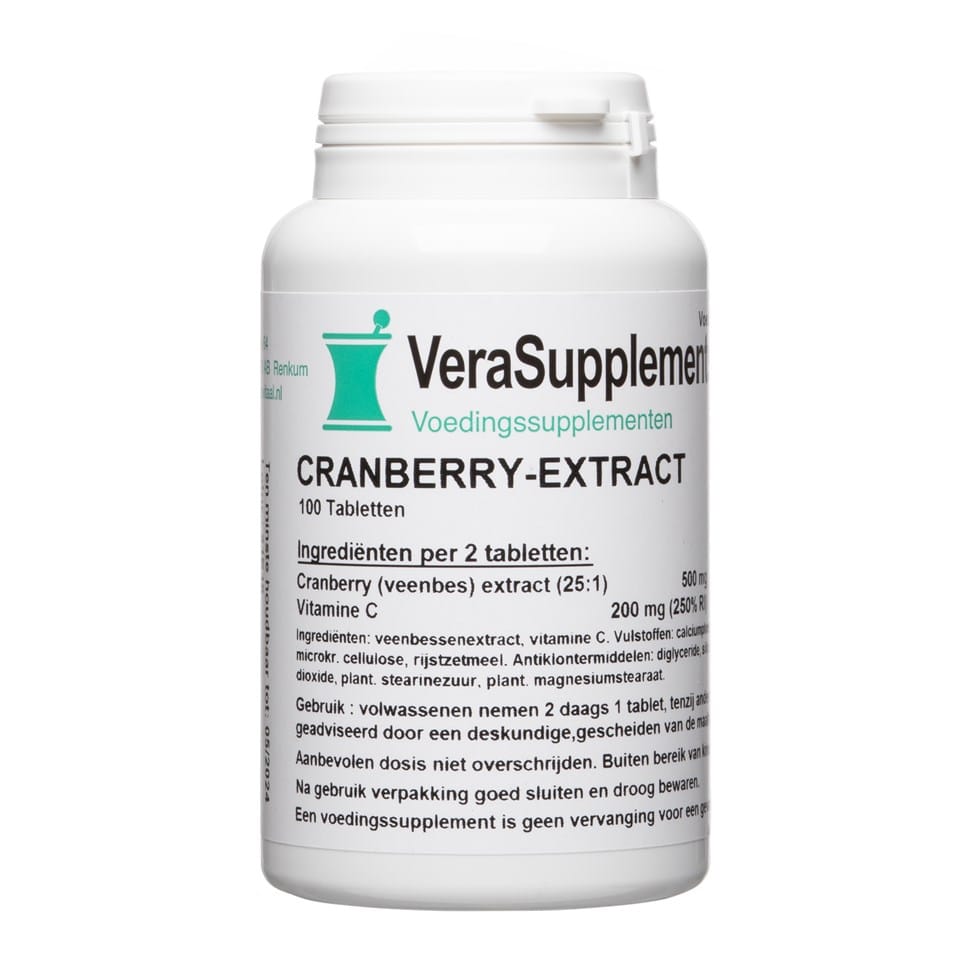 Je weet hoe het gaat. Je wilt goed voor jezelf zorgen, maar soms schiet het erbij in. Drukke dagen, weinig tijd om op alle details te letten, en toch wil je je lichaam geven wat het nodig heeft. VeraSupplements Cranberry Extract Tabletten van VeraSupplements is een voedingssupplement dat jou hierbij ondersteunt. Geen loze beloftes, maar VeraSupplements Cranberry Extract Tabletten bevat de rode bessen van laaggroeiende, houtachtige planten (Vaccinium macrocarpon). De meerderheid van deze bessen worden geoogst in september en oktober. Cranberries werden reeds gebruikt door de Noord-Amerikaanse volkeren (lang wanneer jij dat kunt gebruiken.