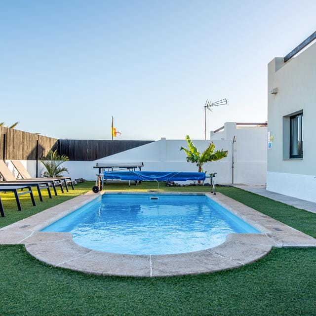 Gelegen in het hart van Caleta de Fuste vind je Villas Alicia. De villa is voorzien van onder andere drie slaapkamers, een ruime woonkamer en een gezellige living. Het allerleukste is de tuin met privézwembad en ligbedden. Zo is verkoeling altijd dichtbij! Het plaatsje Caleta de Fuste is een levendige plek om je vakantie door te brengen. Binnen enkele minuten lopen bereik je het mooie strand Playa del Castillo en in de omgeving vind je een scala aan winkels en eetgelegenheden.
