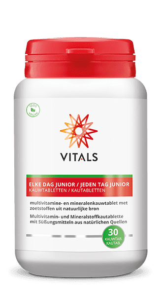 Je weet hoe het gaat. Je wilt goed voor jezelf zorgen, maar soms schiet het erbij in. Drukke dagen, weinig tijd om op alle details te letten, en toch wil je je lichaam geven wat het nodig heeft. Vitals Elke Dag Junior Kauwtabletten van Vitals is een voedingssupplement dat jou hierbij ondersteunt. Geen loze beloftes, maar Vitals Elke Dag Junior Kauwtabletten is een hoogwaardige en uitstekend opneembare kindermulti kauwtablet, met zoetstof uit Stevia. De meeste kindermulti’s in de vorm van kauwtabletten bestaan voor een groot deel uit suikers en/of bevatten kunstmatige zoetstoffen om de smaak wanneer jij dat kunt gebruiken.