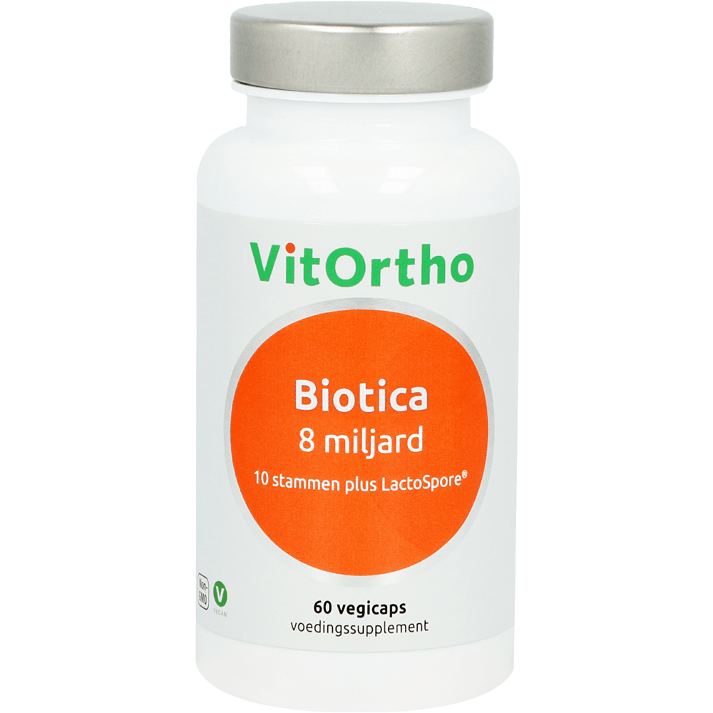 Je weet hoe het gaat. Je wilt goed voor jezelf zorgen, maar soms schiet het erbij in. Drukke dagen, weinig tijd om op alle details te letten, en toch wil je je lichaam geven wat het nodig heeft. VitOrtho Biotica 8 Miljard Vegicaps 60ST van VitOrtho is een voedingssupplement dat jou hierbij ondersteunt. Geen loze beloftes, maar VitOrtho Biotica 8 Miljard is een probioticapreparaat welke een goede aanvulling kan zijn op uw gebalanceerde leeftstijl. In de Vegicaps zitten maar liefst 8 miljard bacteriën, uit wel 11 verschillende stammen, waaronder Lactospore®. Dit supplement is ook geschikt voor wanneer jij dat kunt gebruiken.