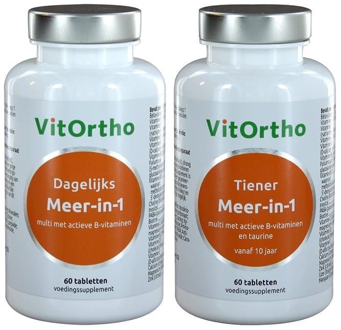 Je weet hoe het gaat. Je wilt goed voor jezelf zorgen, maar soms schiet het erbij in. Drukke dagen, weinig tijd om op alle details te letten, en toch wil je je lichaam geven wat het nodig heeft. VitOrtho Meer in 1 Dagelijks & Tiener Tabletten 2x60st van VitOrtho is een voedingssupplement dat jou hierbij ondersteunt. Geen loze beloftes, maar VitOrtho Meer in 1 Dagelijks & Tiener is een combinatieverpakking van de voedingssupplementen: VitOrtho Meer in 1 Dagelijkse Tabletten 60st & VitOrtho Meer in 1 Tiener Tabletten 60st. Beide vitamine- en mineralenpreparaten bevatten enkel de beste vitamine- en wanneer jij dat kunt gebruiken.